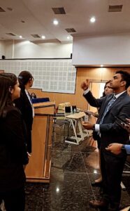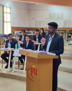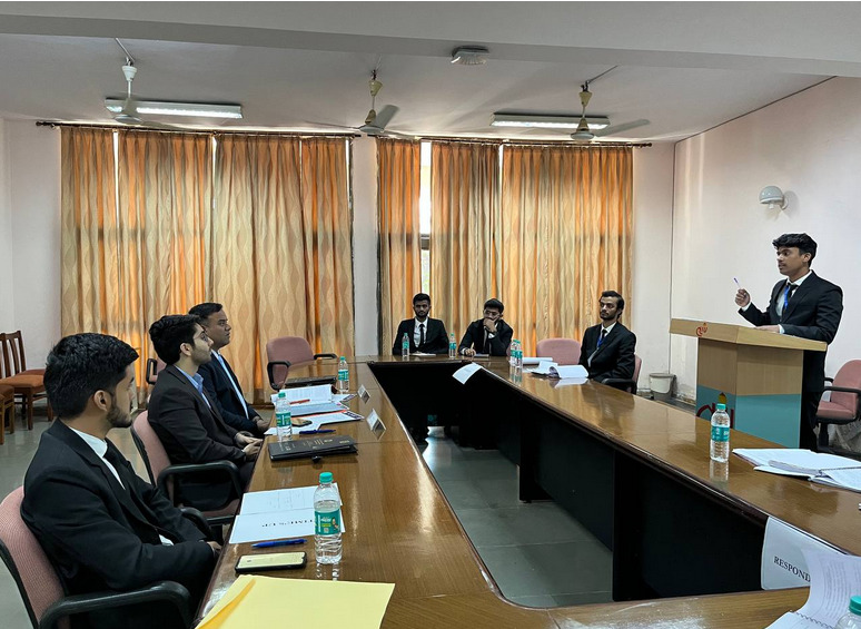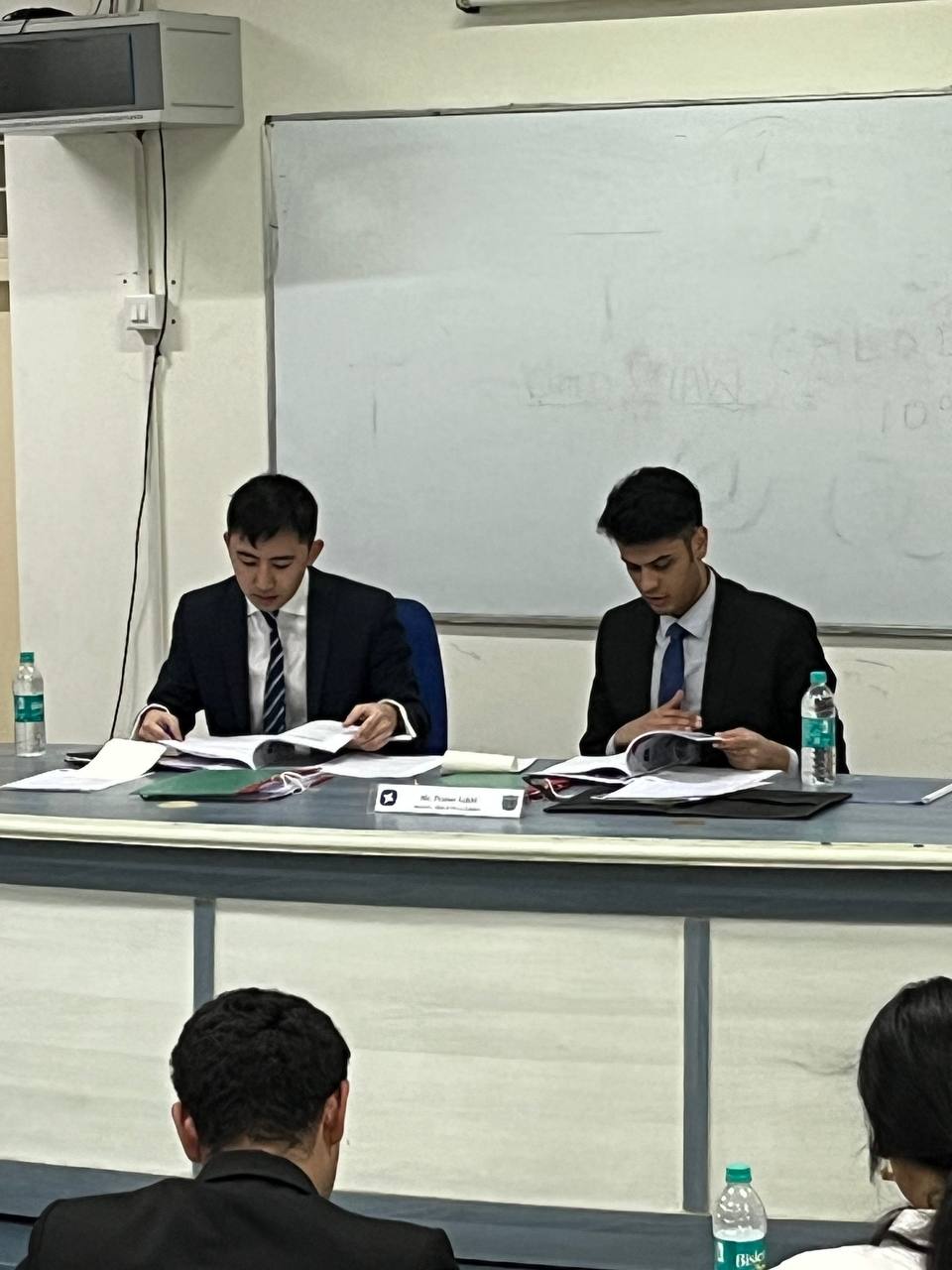 The courtroom is presided over by the arbitrators Ms. Aparajita Marwah and Ms. Aishwarya Srivastava. The respondent’s speaker presents their arguments, and the judges ask for clarification on the law governing the arbitration proceedings. The claimant’s speaker explains the doctrine of separability, the three-tier test, and the closest connection test. The judges engage in a dialogue with the speaker on Section 21 of the Indian Companies Act and Section 2(51), which defines Key Managerial Persons. They question the power of directors to authorise the agreement. The speaker moves on to the second issue and explains why Morbius Capital should be part of the negotiation, on which the judges request clarification on Morbius’s consent to be a part of the agreement. The rounds are concluded with a quick round of rebuttals and judges provide valuable feedback.