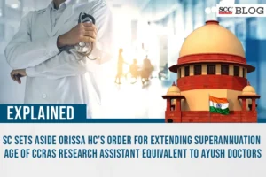 Supreme Court: In a civil appeal filed by Central Council for Research in Ayurvedic Sciences (CCRAS) (’appellant’) against the Judgment and order of Orissa High Court, whereby, Central Administrative Tribunal’s (‘CAT’) order was set aside and the respondent was held entitled to the benefit of enhancement of retirement age from 60 to 65 years as applicable to the Ministry of Ayurveda, Yoga and Naturopathy, Unani, Siddha and Homeopathy (AYUSH) doctors working under the Ministry of AYUSH, the division Bench comprising of the Chief Justice of India, Dr. D.Y. Chandrachud and J.B. Pardiwala*, J. allowed the appeal and set aside the impugned order of High Court.