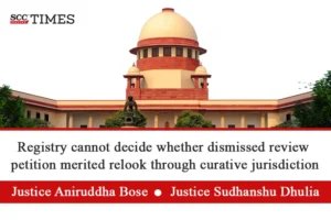 Supreme Court: In an application challenging the order of the Supreme Court Registrar dated 31-10-2022 declining registration of a set of ‘curative petitions’, the Division Bench of Aniruddha Bose* and Sudhanshu Dhulia, JJ. clarified that Registry was not vested with power to decide whether a review petition dismissed after open court hearing merited relook through curative jurisdiction of the Court. It further directed the Registry to consult with 3 senior-most judges of Supreme Court, and the judges who passed the judgment challenged.
