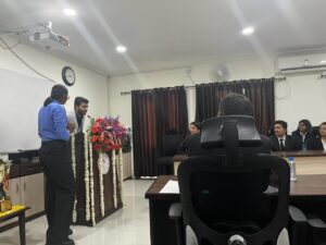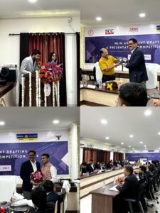 A draw of lots was conducted to determine the order in which the finalist teams would present their Agreements before our esteemed panel of judges, comprising Ms. Deeksha Manchanda (Partner, Chandiok & Mahajan Advocates and Solicitors); Mr. Anchit Oswal (Partner at Khaitan & Co.) ; and Ms. Pallavi Railkar (Legal Head at VMock).