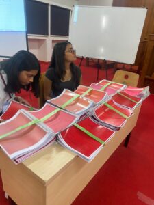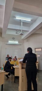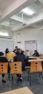 10:15 AM: Briefing of Judges by the key team – Ms. Prakruthi Sunil and Ms. Zareen Fatima. The team briefed the judges about the identification of clash points, beginning with factual points of the memorial of NMCC and identification of crucial paragraphs of the proposition. The team also briefed the judges of the applicable laws and cases in the present factual matrix.