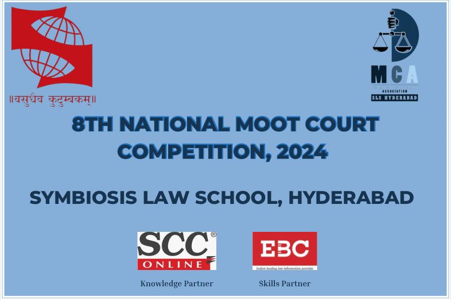 The Moot Court Association of Symbiosis Law School, Hyderabad, welcomes you to the live blog of the 8th National Moot Court Competition, 2024. The competition commences on the 5th of April 2024, in collaboration with Eastern Book Company as Skill Partner, and SCC Online as Knowledge Partner. This competition is being held offline. A total number of 30 teams are participating in the competition. The event will include 4 rounds, i.e., Preliminary Rounds 1 and 2, Quarterfinals, Semi-Finals, and Finals.