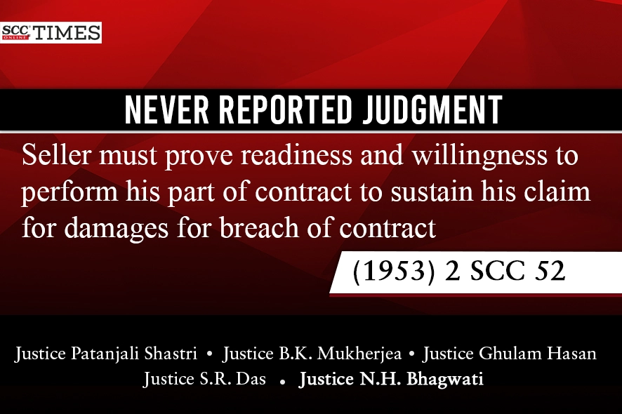 Supreme Court: In an appeal filed by the appellant against the judgment and decree dated 21-2-1947 of the Allahabad High Court (‘the High Court’), whereby it was held that the respondents were not guilty of breach of contract and the appellant was not entitled to recover damages from the respondents, the five-judges bench of Patanjali Shastri, C.J., and B.K. Mukherjea, S.R. Das, Ghulam Hasan and N.H. Bhagwati*, JJ., stated that no evidence was led by the appellant to show that he was ready and willing to perform his part of the first contract and it was abundantly clear from the documents on the record that beyond supplying the total quantity of 89,835 maunds 13 seers at the said various stations, the appellant was not in a position to supply any further sugarcane under the first contract.
