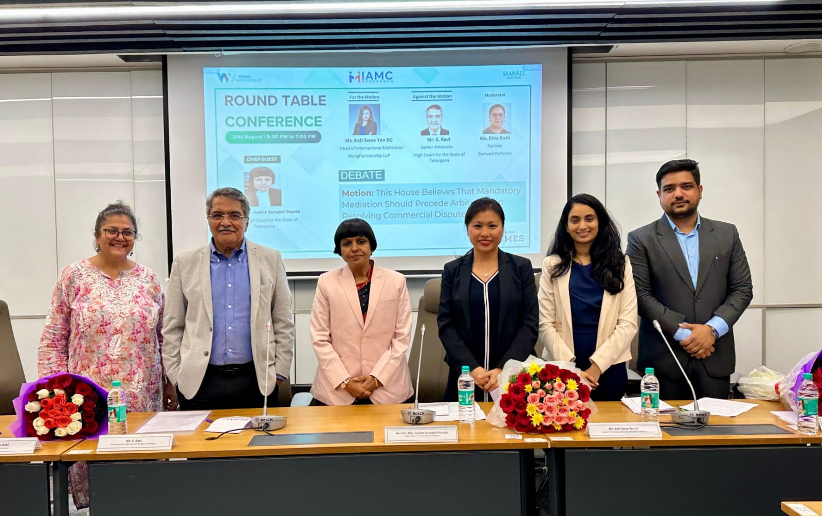 On August 21, 2024, the International Arbitration and Mediation Centre (IAMC) Hyderabad organized a Roundtable Conference in collaboration with WongPartnership LLP, Singapore, and Samvad Partners, Hyderabad.