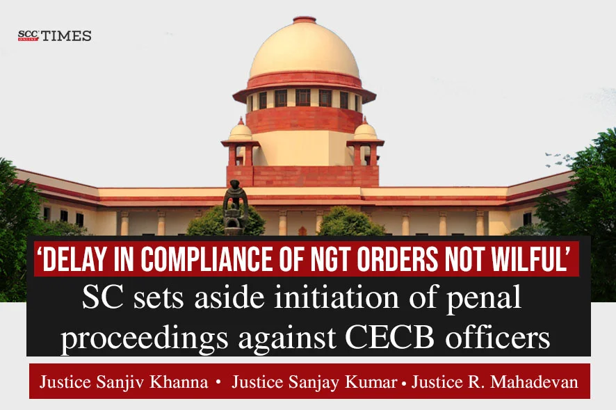The 3-Judge Bench of Sanjiv Khanna, Sanjay Kumar* and R. Mahadevan, JJ., while taking serious view of the delay and lapses on the part of CECB in implementing the direction of the NGT, set aside the impugned order dt. 21-8-2023 stating that delay on the part of the CECB in following directions of NGT order dt. 3-2-2024, did not amount to wilful negligence or an abject dereliction of duty on its part in abiding by such directions. The Court further pointed out that CECB has achieved full compliance with the directions issued by the NGT vide order dt. 3-2-2023.