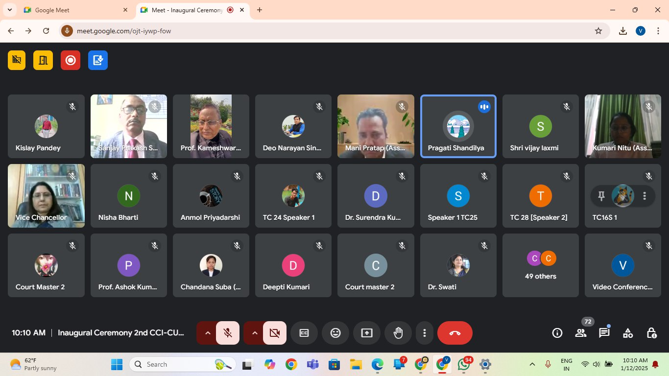 The Inauguration Ceremony of the 2nd CCI — CUSB National Moot Court Competition 2025, then began in all its grandeur from 10:00 A.M in virtual mode on google meet in the benign presence of the Hon’ble Chief Guest, Prof. (Dr.) Harpreet Kaur, Hon’ble Vice Chancellor, NLU Jodhpur, Hon’ble Prof. Kameshwar Nath Singh, Vice — Chancellor, Central University South Bihar, Gaya, Prof. Sanjay Prakash Srivastava, Head & Dean, School of Law and Governance, Central University of South Bihar, Mr. Mani Pratap, Coordinator of Moot Court Society and Assistant Professor of School of Law and Governance, Dr. Kumari Nitu, Co-cordinator of Moot Court Society and Assistant Professor, School of Law and Governance, Dr. Chandana Suba, Co-coordinator of Moot Court Society and Assistant Professor, School of Law and Governance.