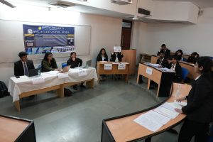 10:45 hours- The exchange of arguments and counter-arguments by the participants has fostered a highly academic atmosphere. As the participants exit the courtroom, the judges are preparing their scoring sheets. We now move on to the next mooting round.