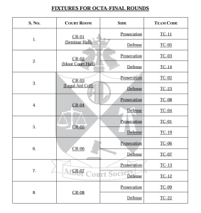 09:41: The Final Round of the 14th National Moot Court Competition commences with TC-02 as Prosecution and TC-08 as Defence.