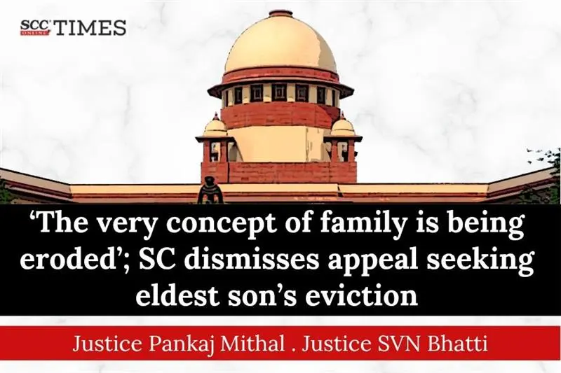 Supreme Court: While considering the instant dispute wherein the filed an appeal seeking eviction of her son from the house; the Division Bench of Pankaj Mithal* and SVN Bhatti, JJ., grimly remarked that though Indian society believes in “Vasudhaiva Kutumbakam” i.e. the earth, as a whole, is one family; however, today there is an inability to retain the unity in the immediate family. “The very concept of ‘family’ is being eroded and we are on the brink of one person one family”.