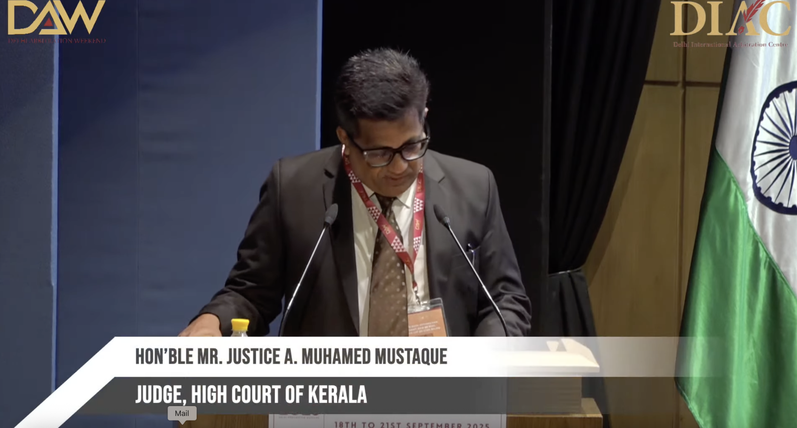 Justice A. Muhamed Mustaque delivered a compelling and thought-provoking address, combining personal anecdotes, judicial experience, and a forward-looking vision for the role of technology in investment arbitration and dispute resolution.