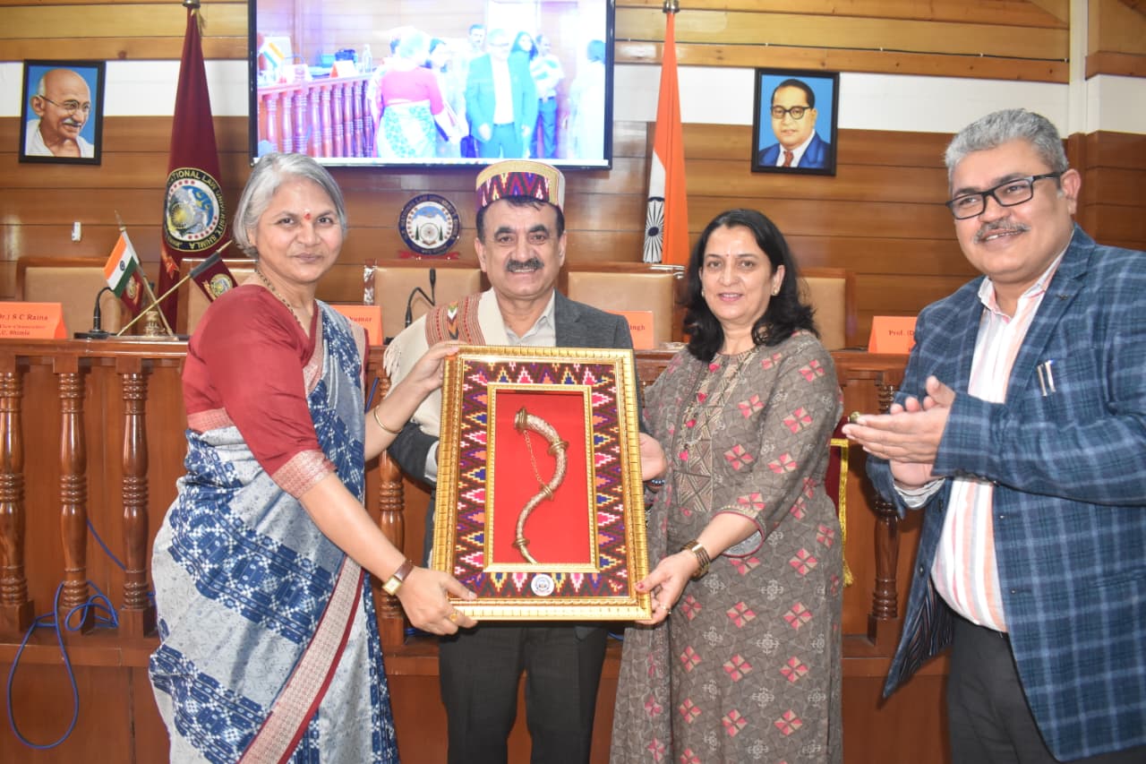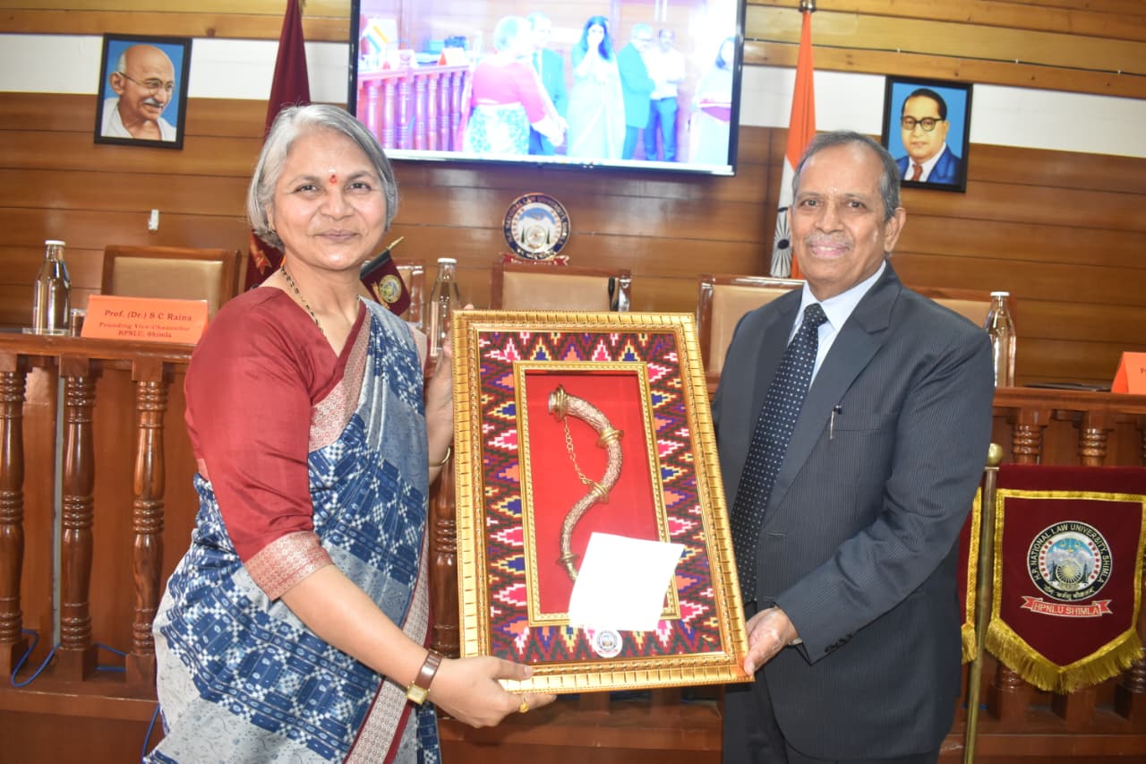 Photo 3 Prof V. Vijay Kumar, former Director, NLU Bhopal as the Chief Guest who delivered the first foundation day lecture, being felicitated by Prof Priti Saxena, Vice Chancellor, HPNLU, at Foundation Day Celebrations