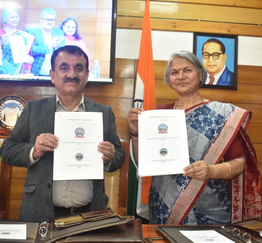 Photo 2 Prof Mahavir Singh, Vice Chancellor, HPU and Prof Priti Saxena, Vice Chancellor, HPNLU signing MoU between the universities