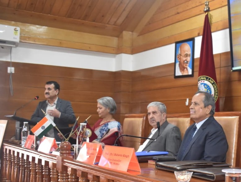 On this occasion, a Memorandum of Understanding (MoU) was formally signed between HPNLU and Himachal Pradesh University (HPU) to foster academic collaboration and research. The MoU was signed by Prof. (Dr.) Priti Saxena, Vice Chancellor, HPNLU, and Prof. (Dr.) Mahavir Singh, Vice Chancellor, HPU, who also graced the event as Guest of Honour. In his address, Prof. Mahavir Singh highlighted the increasing relevance of legal frameworks in nanotechnology, cautioning that materials at the nano scale can become toxic. He also emphasised the need for interdisciplinary and collaborative research, particularly citing the applications of graphene and the role of law in regulating emerging technologies.