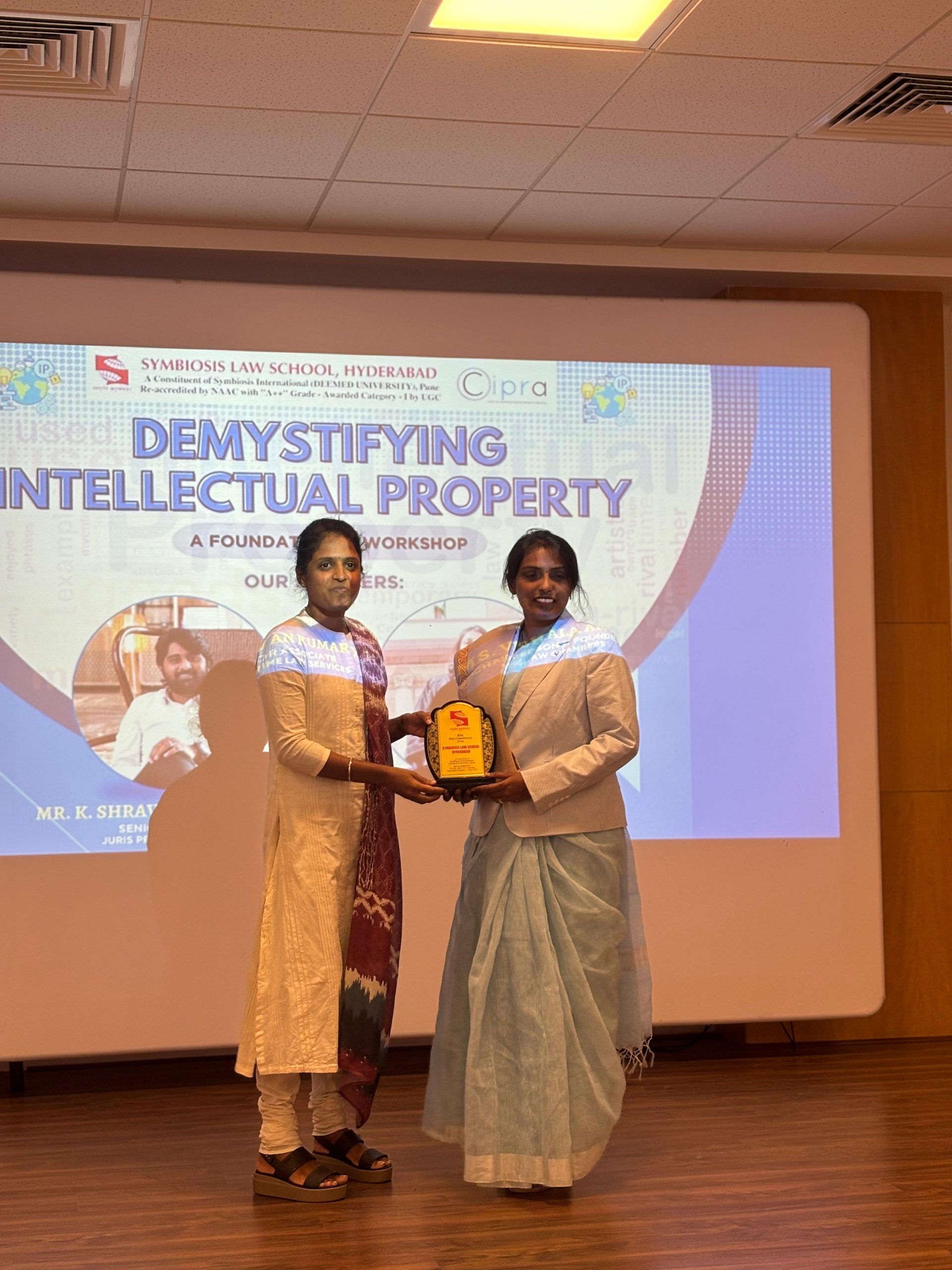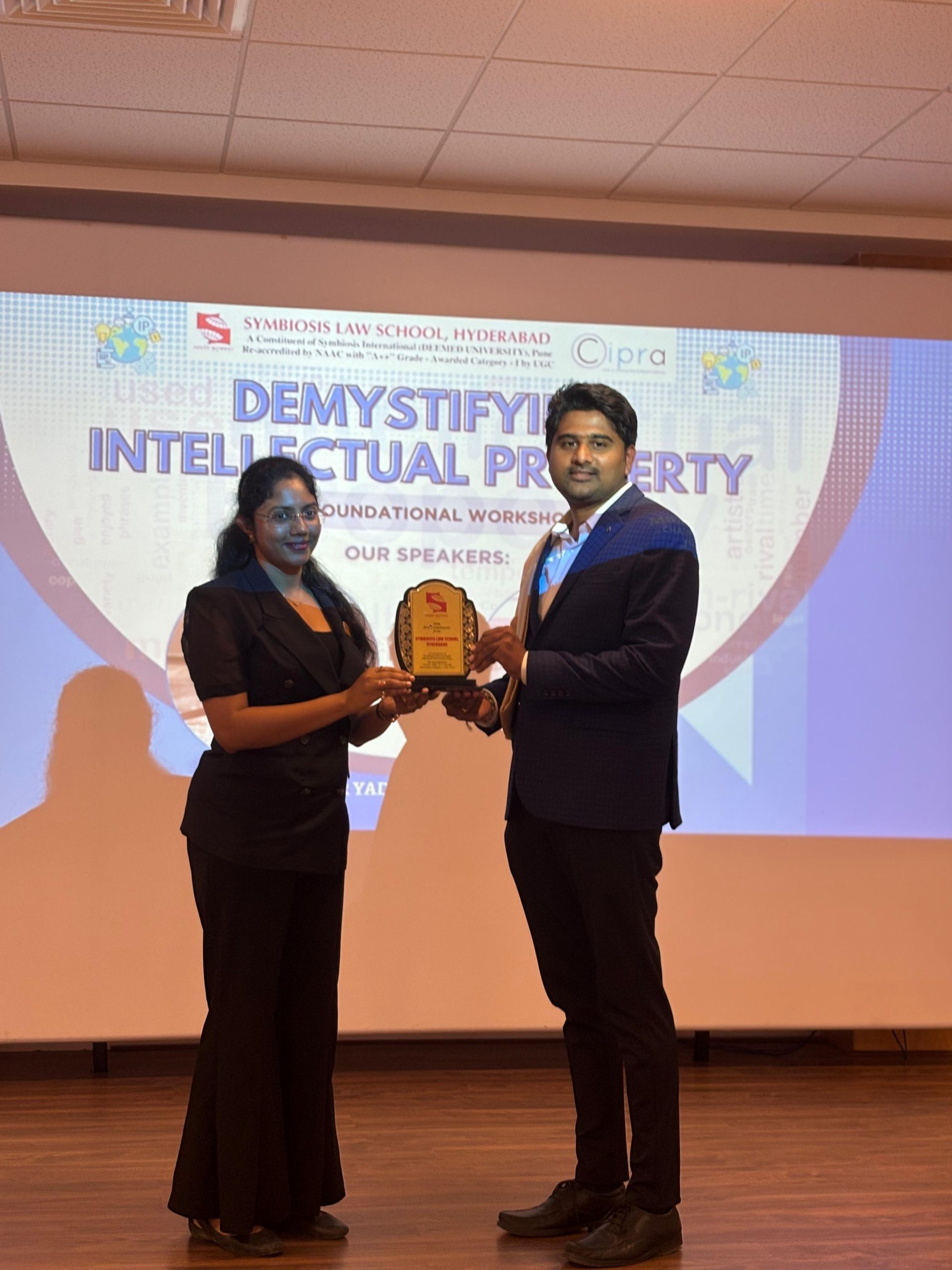 Symbiosis Law School, Hyderabad (SLS-H), known for its commitment to fostering experiential and career-oriented legal education, recently organized a two-hour interactive Workshop on “Basics of Intellectual Property Rights.” The session aimed to introduce students to the fundamental concepts of Intellectual Property Law and its growing relevance in today’s innovation-driven global economy.