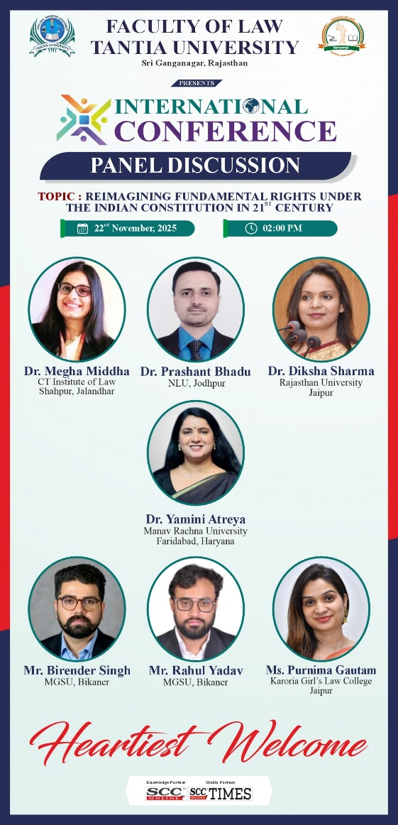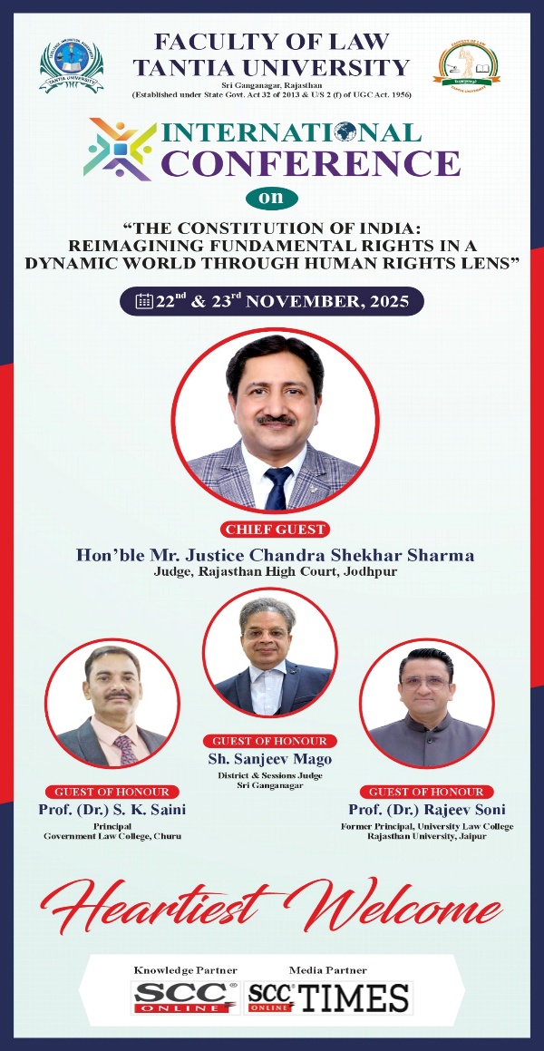 International Conference | Tantia University | Constituiton of India: Reimagining Fundamental Rights in a Dynanic World Through Human Rights Lens [22-23 November 2025]