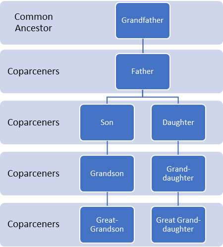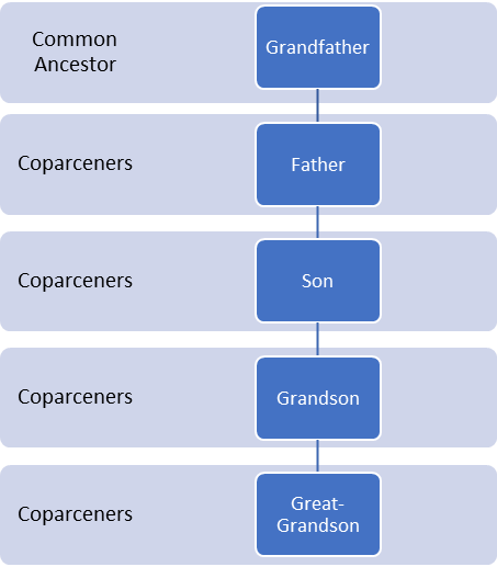 “It is not necessary to form coparcenary or to become a coparcener that a predecessor coparcener should be alive; relevant s birth within the degrees of coparcenary to which it extends.”