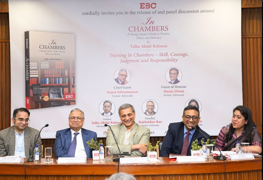 On a remarkable evening that brought together some of India’s most respected legal minds, the Eastern Book Company (‘EBC’) hosted the release of “In Chambers: A Young Lawyer’s Guide to Practice, Ethics and Advocacy” authored by Mr. Talha Abdul Rahman, Advocate-on-Record, Supreme Court of India. The programme drew a packed audience of advocates, students and members of the legal fraternity, becoming a celebration of learning, mentorship and the values that shape the journey of every young lawyer.