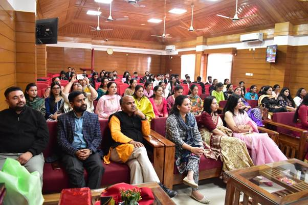 Guest of Honour Ms. Poonam Thakur, Assistant Commissioner, State Taxes and Excise, shared her professional experiences and spoke about the evolving role of women in public administration. She highlighted the importance of resilience, dedication, and self-belief for young women aspiring to enter public service and leadership positions. She encouraged students to remain committed to integrity and excellence in their professional journeys.