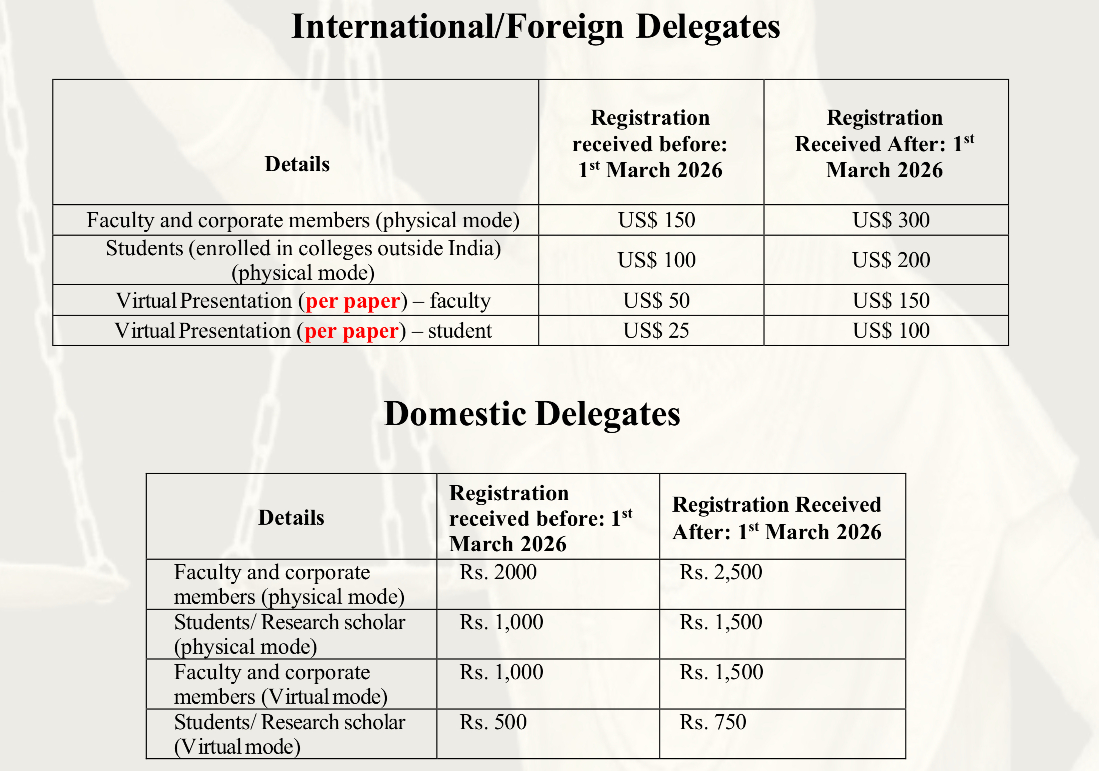 Only registered participants will be allowed to take part in the International Conference.