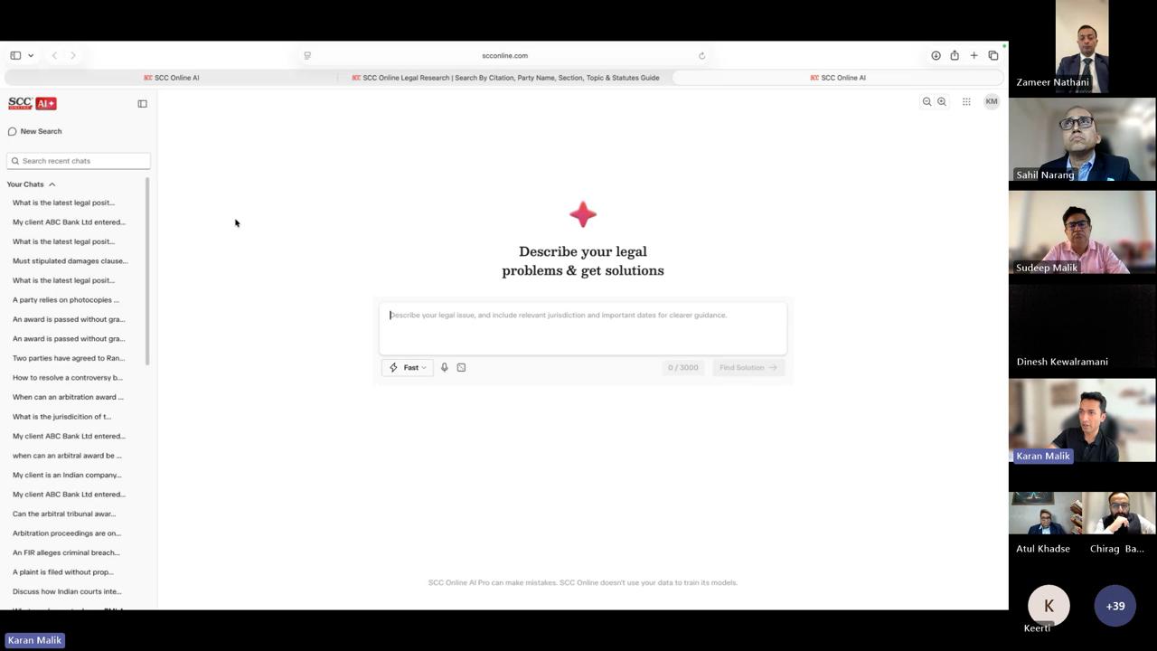 As part of the broader panel discussion, a dedicated segment was allocated to a live demonstration of SCC Online® AI Pro, offering attendees a first-hand look at how AI can be meaningfully integrated into day-to-day legal workflows. This segment stood out for its focus on applied legal intelligence, illustrating how research, analysis, and drafting can be streamlined within a single interface.