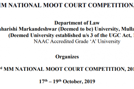 Department of Law , Maharishi Markandeshwar (Deemed to be University), Mullana – Ambala in organizing “3rd MM National Moot Court Competition-2019 on 17th to