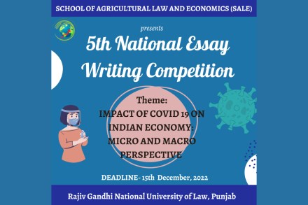 The School of Agricultural Law and Economics (SALE), RGNUL is inviting essays for the Fifth edition of its National Essay Writing Competition.
