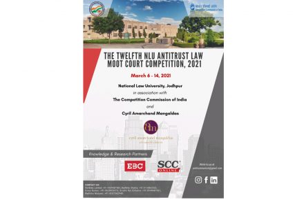 Twelfth NLU Antitrust Law Moot Court Competition, 2021 is being held in association with Cyril Amarchand Mangaldas and knowledge partner SCC Online and