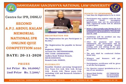 DSNLU | 2nd A.P.J. Abdul Kalam Memorial National IPR Online Quiz Competition, 2020
