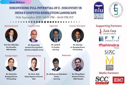 Webinar on ‘Dispute Resolution in India – Discovering the Full Potential of e-discovery’ organized by MNLU Mumbai. Date: Saturday, 05 September 2020 Time:
