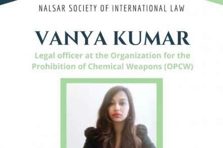 NALSAR Society of International Law is organizing the first webinar for the new academic year by Ms. Vanya Kumar on the topic ‘Career Opportunities in