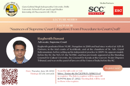 USLLS’ Lecture Series | Lecture III: Nuances of Supreme Court Litigation: From Procedure to Court Craft by Mr. Raghenth Basant (Advocate, Supreme Court) (June 28, 2022)