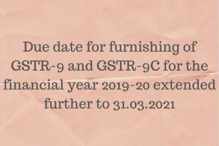 Due date for furnishing of GSTR-9 and GSTR-9C for the financial year 2019-20 extended further to 31.03.2021