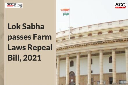 On November 29, 2021, the Lok Sabha has passed Farm Law Repeal Bill, 2021. The Bill will repeal the following Acts: