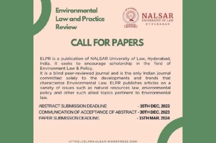 The Environment Law and Practice Review, NALSAR’s flagship Environment Law Journal is currently open for submissions for its 9th Volume. The deadline