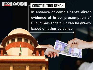 In absence of complainant’s direct evidence of bribe, presumption of Public Servant’s guilt can be drawn based on other evidence; holds SC Constitution Bench