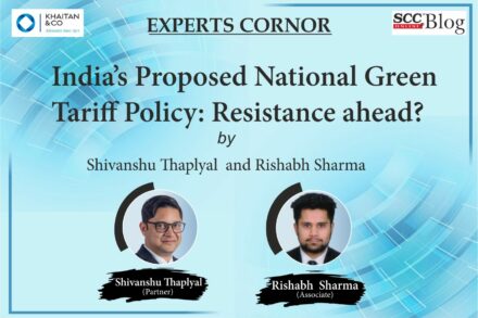 Experts CornerKhaitan & Co India’s Proposed National Green Tariff Policy: Resistance Ahead? by Shivanshu Thaplyal† and Rishabh Sharma†† Cite as: 2022 SCC OnLine Blog Exp 2 Share on Facebook (Opens in new window) Facebook Share on X (Opens in new window) X Share on LinkedIn (Opens in new window) LinkedIn Share on WhatsApp (Opens in new window) WhatsApp Share on Telegram (Opens in new window) Telegram More Print (Opens in new window) Print Email a link to a friend (Opens in new window) Email Share on Reddit (Opens in new window) Reddit